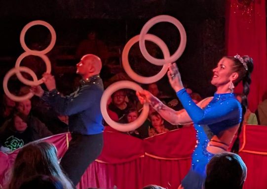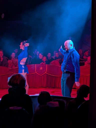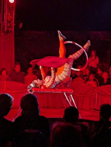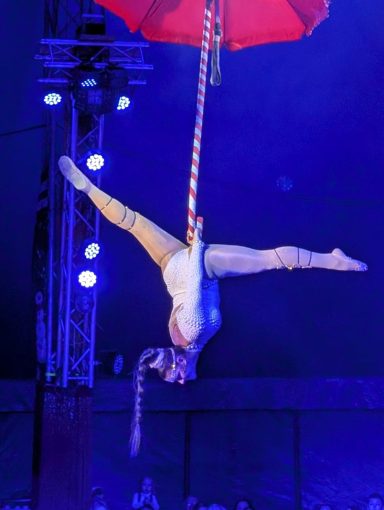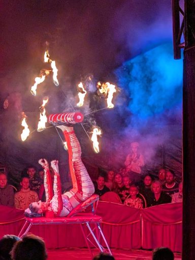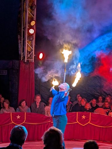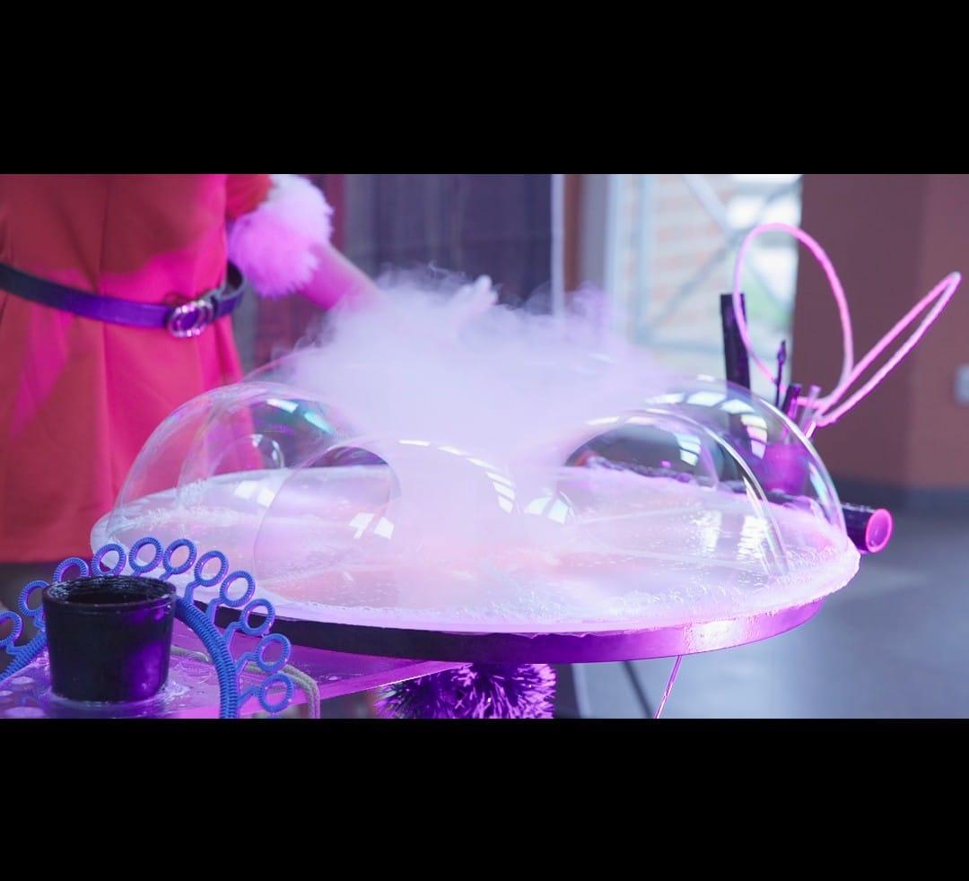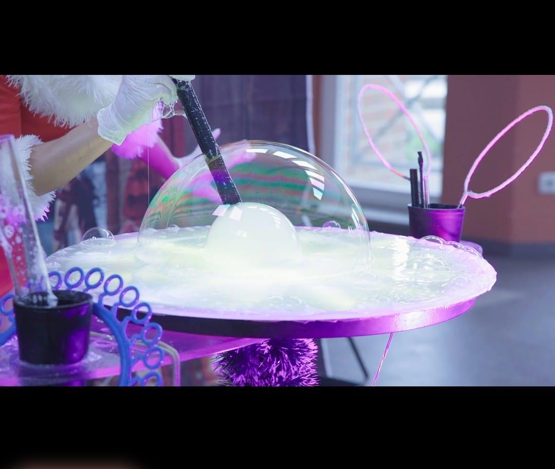 Das Publikum erwartet eine spektakuläre Seifenblasen Show mit Artistik in und über der Manege.